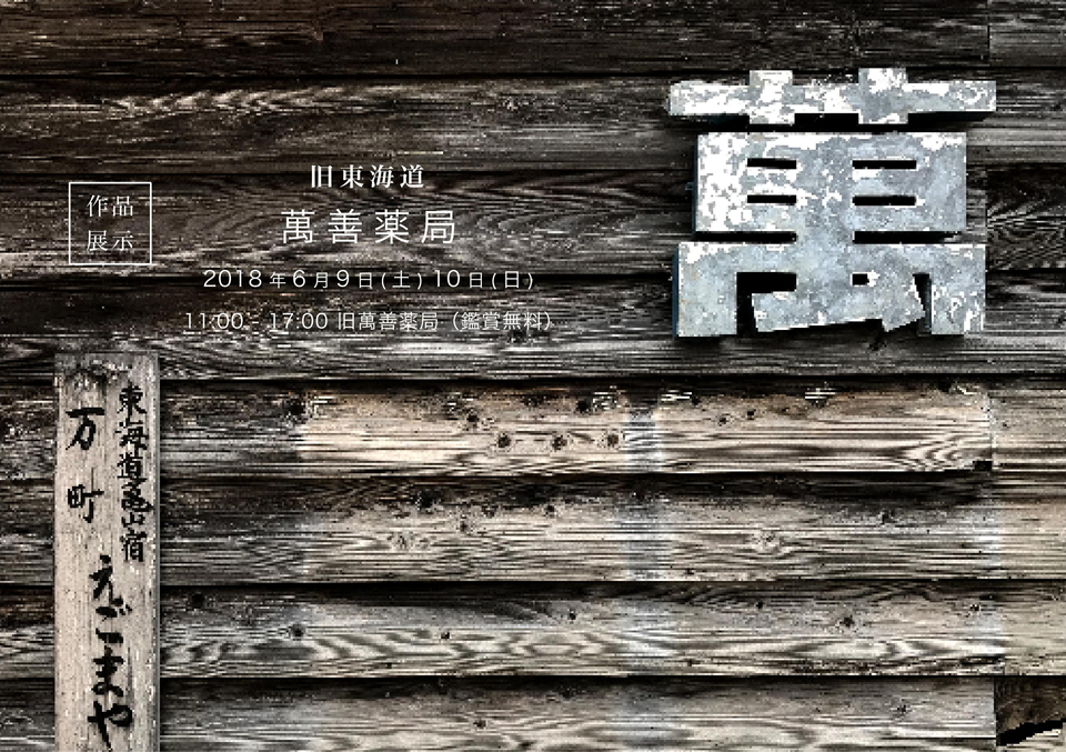 昨年、三重県亀山市の旧萬善薬局で制作した「風の通り道」を、6月9日(土)10日(日)に公開展示いたします。本作品は旧東海道に残る蔵(旧萬善薬局)の二階に在り、同じく蔵の一階で制作を行った宙宙さんの「萬善薬局 蔵」と共に公開いたします。一見すると全く異なるふたつの作品ですが、時=時間など、共通性を感じさせる空間になっています。作品の公開は期間限定となっています。この機会にぜひご覧になってください。