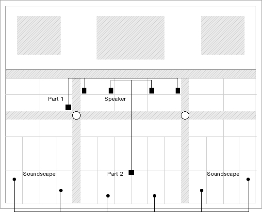 1)は両端のスピーカーから、もうひとつ(Part 2)は手元のボタンを押すと正面のスピーカーから再生されます(個別でお聴き頂く事も可能です)。