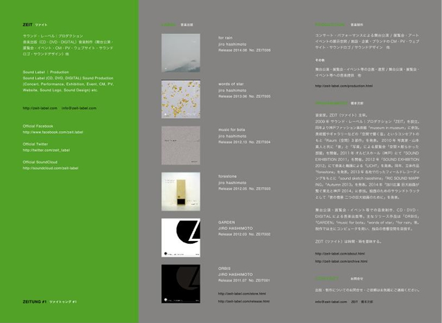 ZEITのレーベル・プロダクション情報を掲載したフリーペーパー / ダウンロード(PDF)。*Zeitung(ツァイトゥング)ドイツ語=新聞