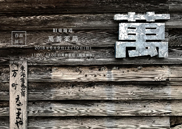 [タイトル] 旧東海道「萬善薬局」 [日時] 2018年6月9日(土)- 6月10日(日)11:00 - 17:00 [料金] 無料 [会場] 旧萬善薬局 三重県亀山市西町501 [展示作品] 萬善薬局 蔵(蔵一階)風の通り道(蔵二階) [展示作家] 宙宙(蔵一階)橋本次郎(蔵二階) [URL] https://www.facebook.com/tokaido.manzen