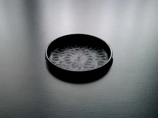 [TITLE] waterdance [FORMAT] Sound Art [MATERIAL] Speaker unit / Amplifier / Glass / Water [EXHIBITION] Hyogo / Osaka / Kyoto / Oita [YEAR] 2016 [URL] http://zeit-label.com/release/zeit008.html