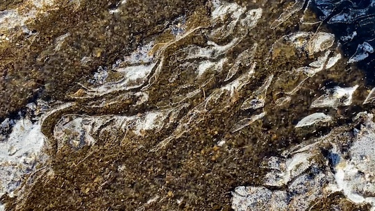 A video work inspired by river ice (frazil ice) forming on the surface of the Kuji River and the icefall of Fukuroda Falls.
